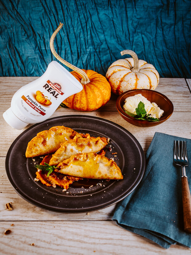 In Pumpkin Reàl, Dickinson, Autumn, and Buckskin pumpkins are pureed with cinnamon, ginger, nutmeg and clove to bring chefs the taste of fall year-round. Its convenience paired with its pure, quality flavors makes it a must-have ingredient for all culinary connoisseurs.